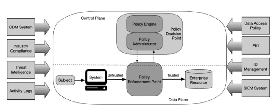 Policy Administrator (PA): Depending on the final decision provided by PE, it either creates or declines a communication path between the organization’s system and the user requesting access.