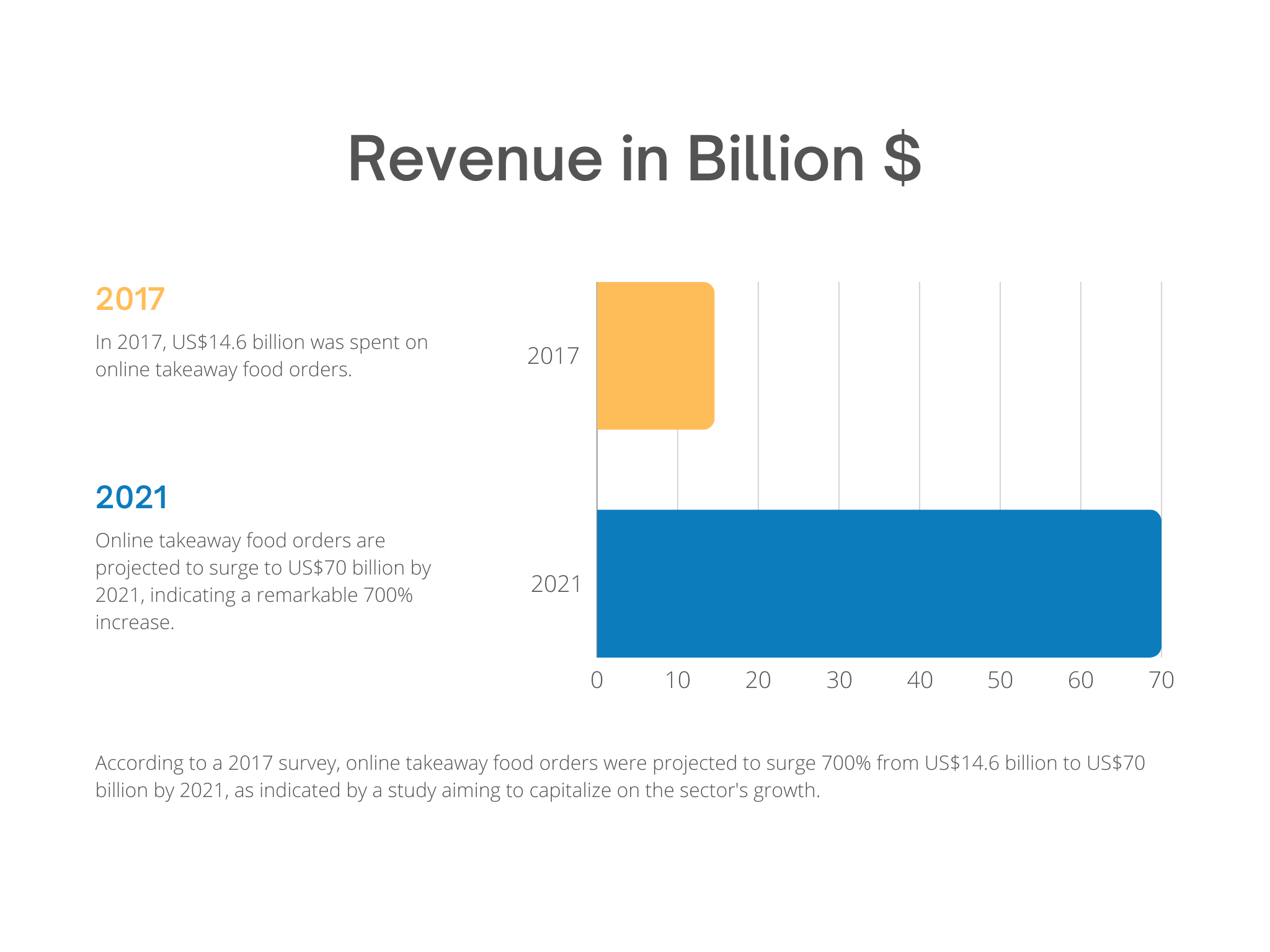 According to a 2017 survey, online takeaway food orders would rise 700% from US$14.6 billion to US$70 billion by 2021, according to a study hoping to benefit from the sector’s development.